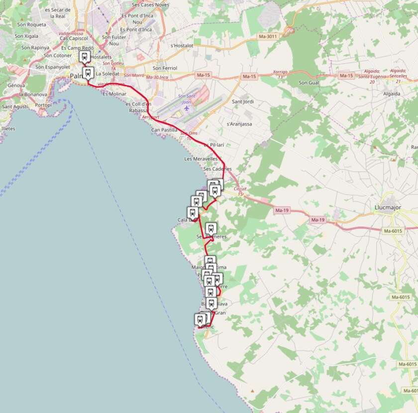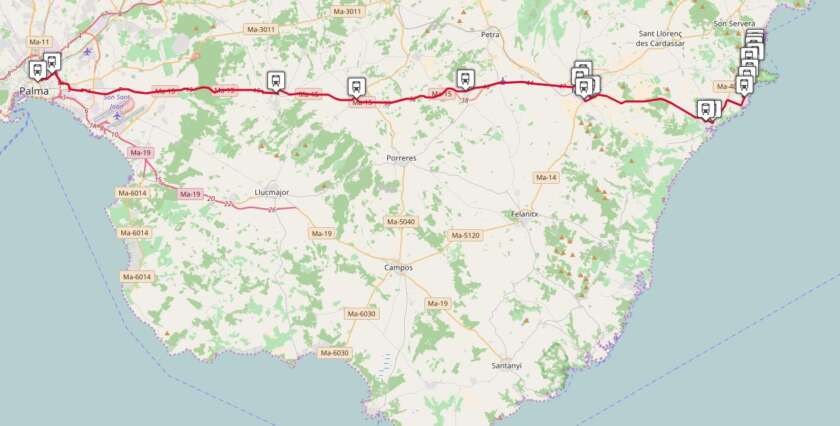 Los autobuses cubren rutas como Palma – Cala Millor, Palma – Algaida – Campos, Palma – Manacor, entre otras. Estas líneas conectan las zonas más concurridas de la isla, garantizando un gran alcance para tus campañas publicitarias.